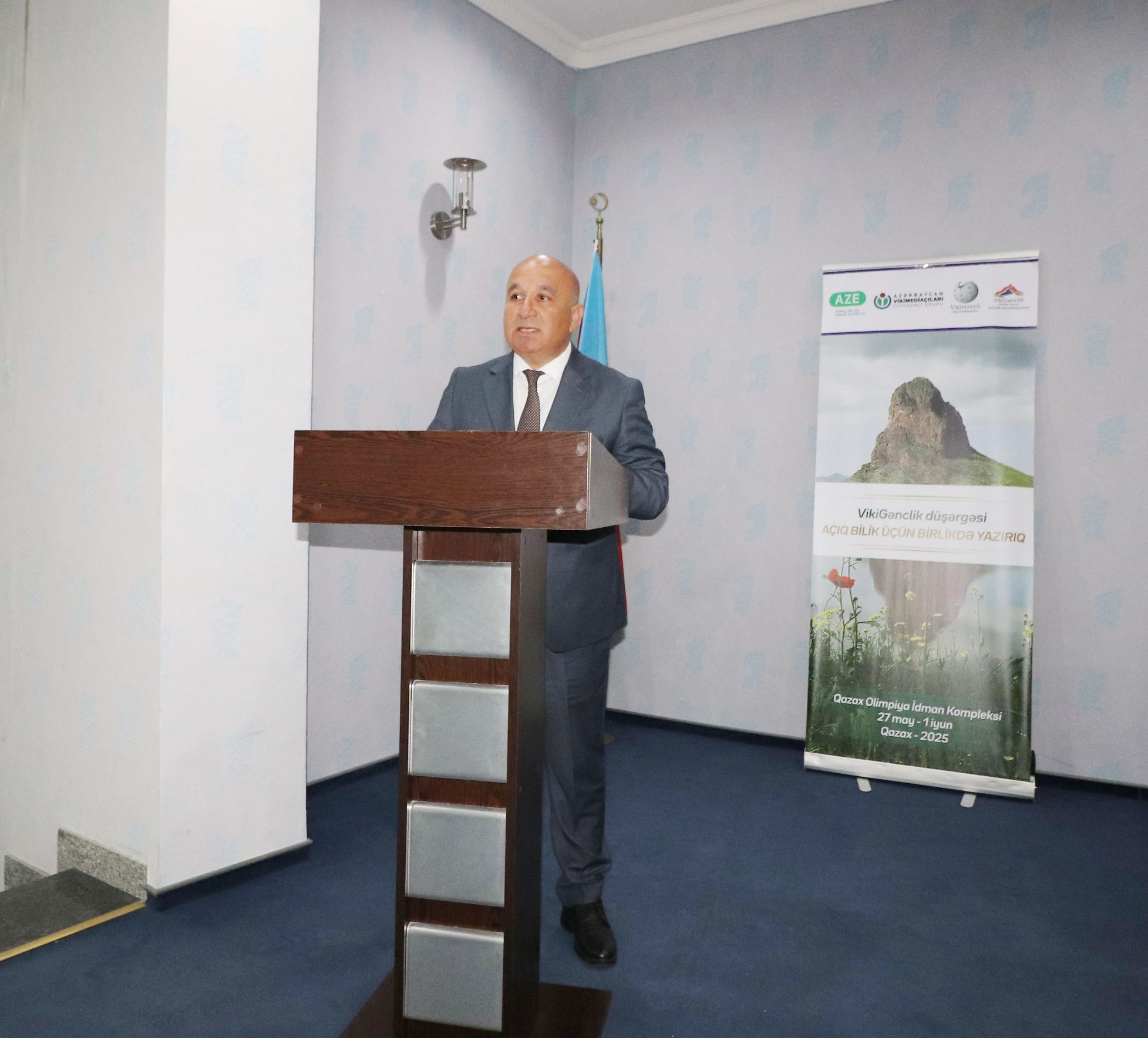 Qazax-Tovuz Regional Gənclər və İdman İdarəsinin rəisi Əziz Məsmalıyev çıxış edərək Qazaxda səfərdə olan düşərgə iştirakçılarını salamlayıb, onların ünvanına səmimi ürək sözlərini səsləndirib. Azərbaycan Respublikasının Gənclər və İdman Nazirliyinin “Azərbaycan vikimediaçıları” istifadəçi qrupunun təşkil etdiyi gənclər düşərgəsinin əhəmiyyətindən söz açan natiq buna görə nazirliyin əməkdaşlarına və əməyi, əziyyəti olan insanlara minnətdarlıq edib. Düşərgənin Qazax rayonunda yüksək səviyyədə təşkil olunmasında, rayonun gəzməli, görməli yerlərinə ekskursiyanın təşkil edilməsində göstərdiyi dəstəyə və gənclərə olan səmimi münasibətə, xüsusilə də gənclərlə olan bugünkü görüşə görə rayon rəhbərliyinə təşəkkürünü çatdırıb.