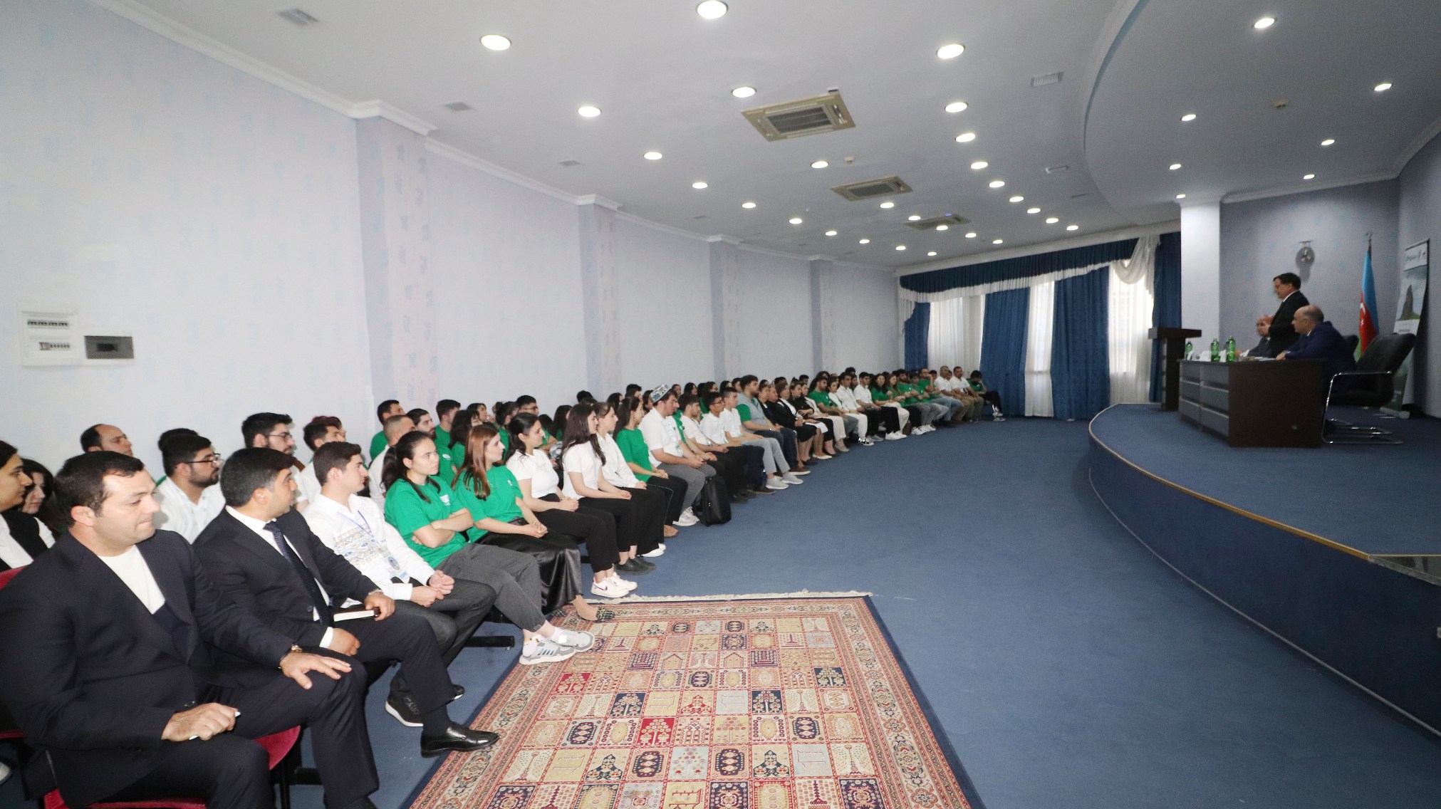 Gənclərlə keçirilən görüşdə əvvəlcə Azərbaycan Respublikasının Dövlət Himni səsləndirilib, torpaqlarımızın ərazi bütövlüyü, ölkəmizin suverenliyi uğrunda canlarından keçmiş şəhidlərimizin, igid Vətən oğullarının əziz xatirəsi birdəqiqəlik sükutla yad edilib.